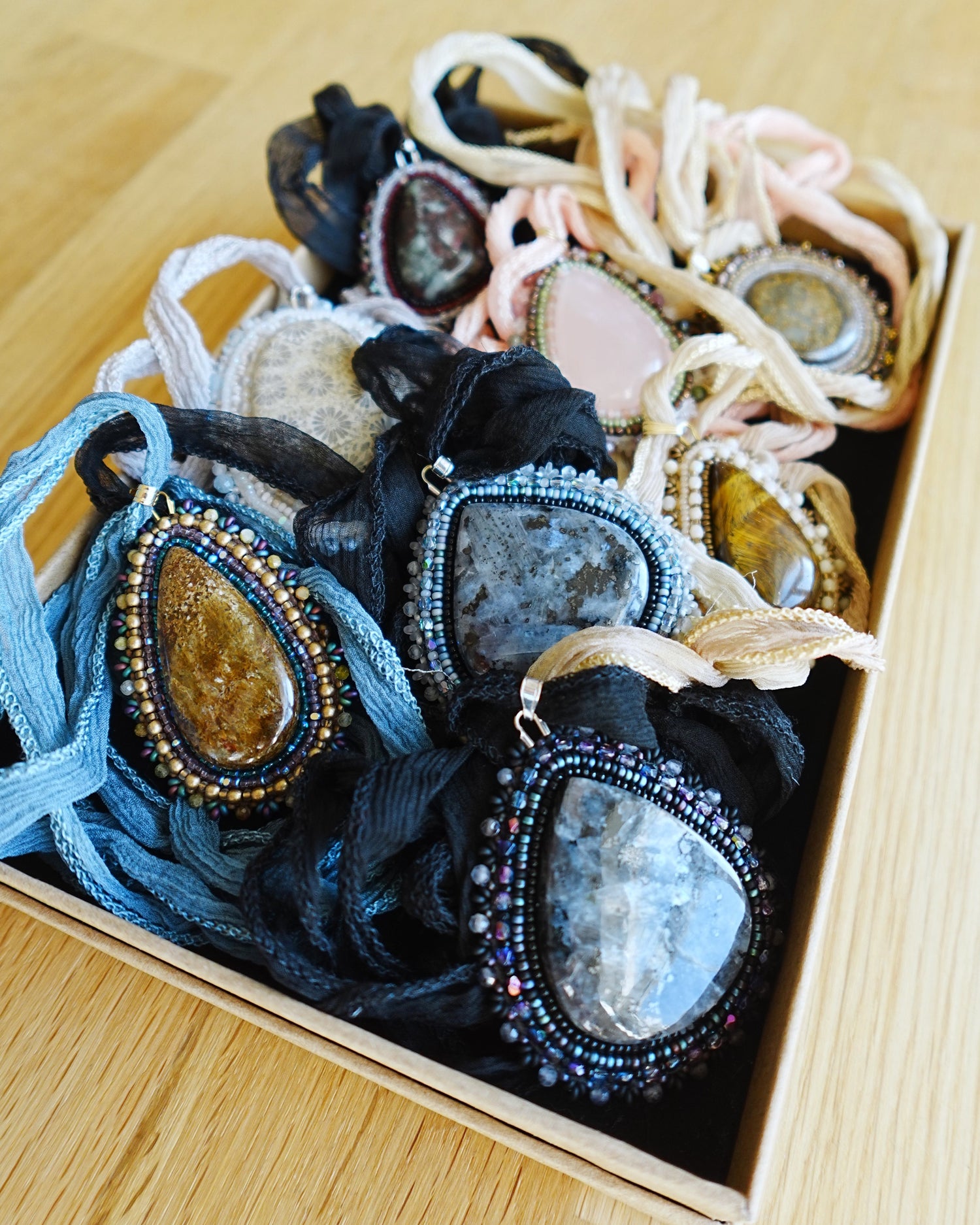 Hier findest du handgefertigten Schmuck in limitierter Auflage und einzigartige Anfertigungen. Egal ob es sich um reinen Glasschmuck handelt oder natürliche Materialien wie z.B. Steine verwendet wurden - diese Schmuckstücke sind etwas Besonderes.