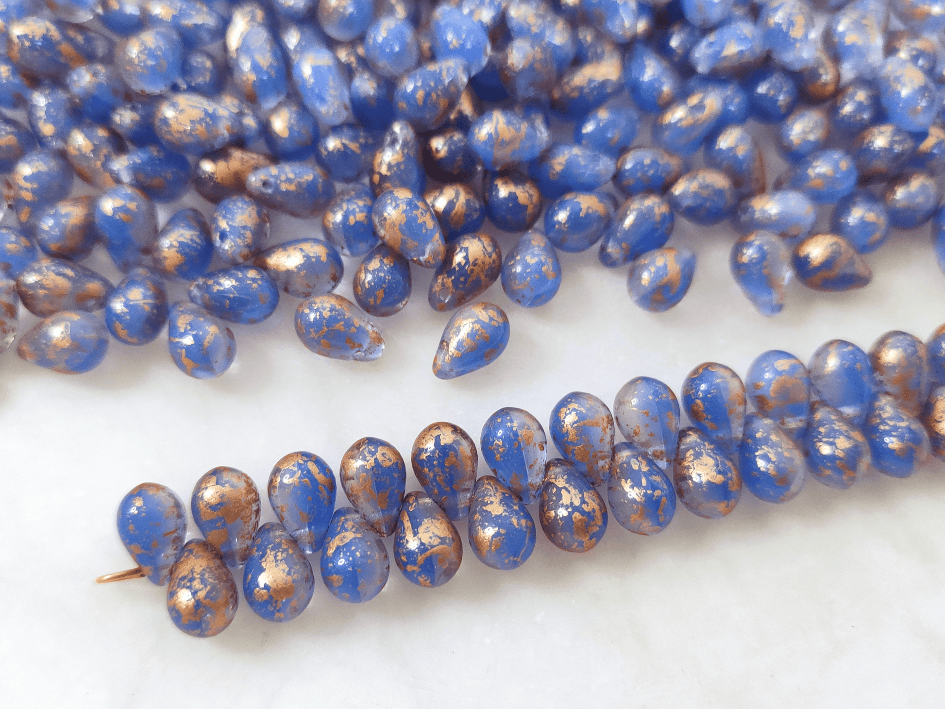 Tropfen 6x9mm - Blau & Kupfer Sprenkel
