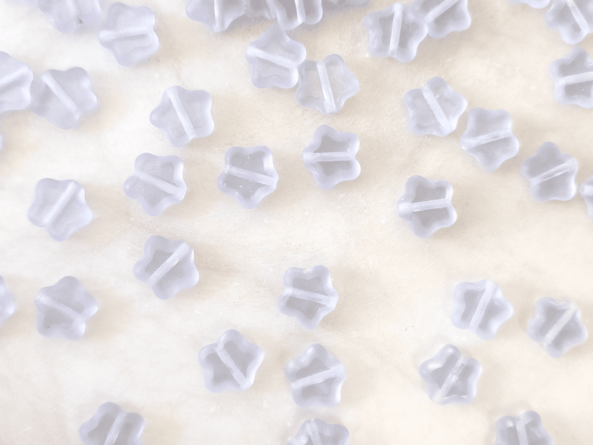 Kleine böhmische Stern-Perlen mit Tischschliff aus hellen lila / Flieder-farbenen Glas, 8mm groß