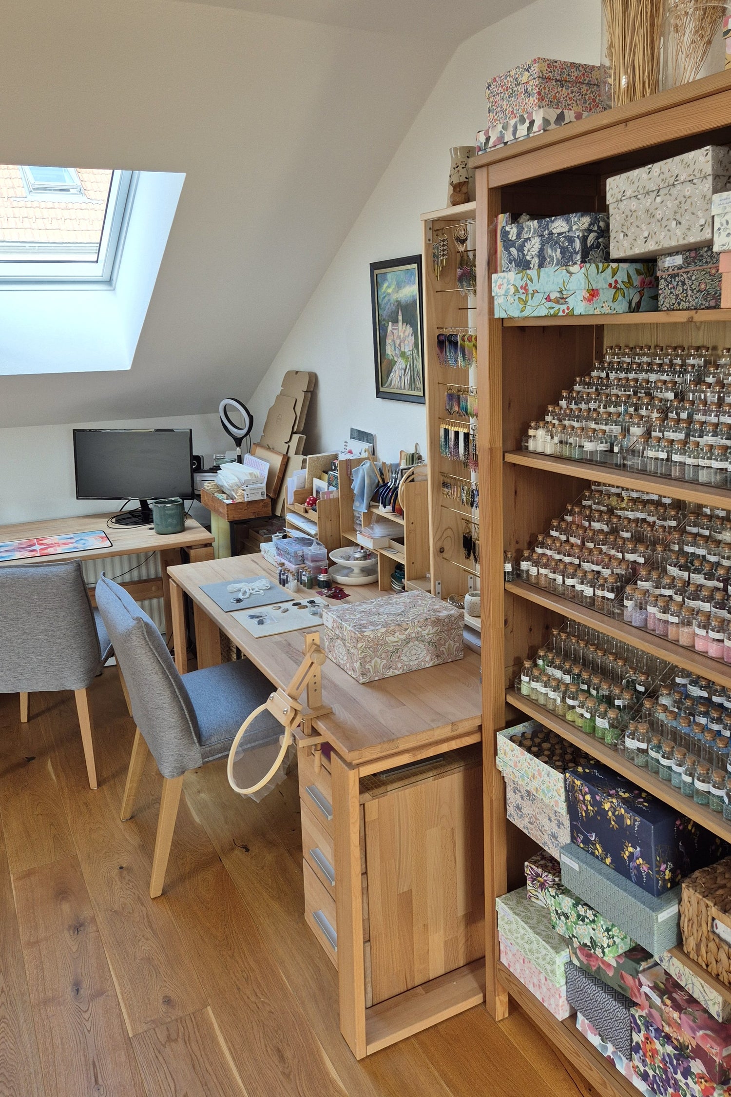 Hi, I am happy to see that you found my little corner in the internet! My name is Maria T. E. Prauße and I am the owner of Baffling Beads. I work full-time as a software developer and I am self-employed on the side. All jewelry pieces are made by hand in my studio at home. Currently only I work on "Baffling Beads" but I would love to get some assistance in the future.
