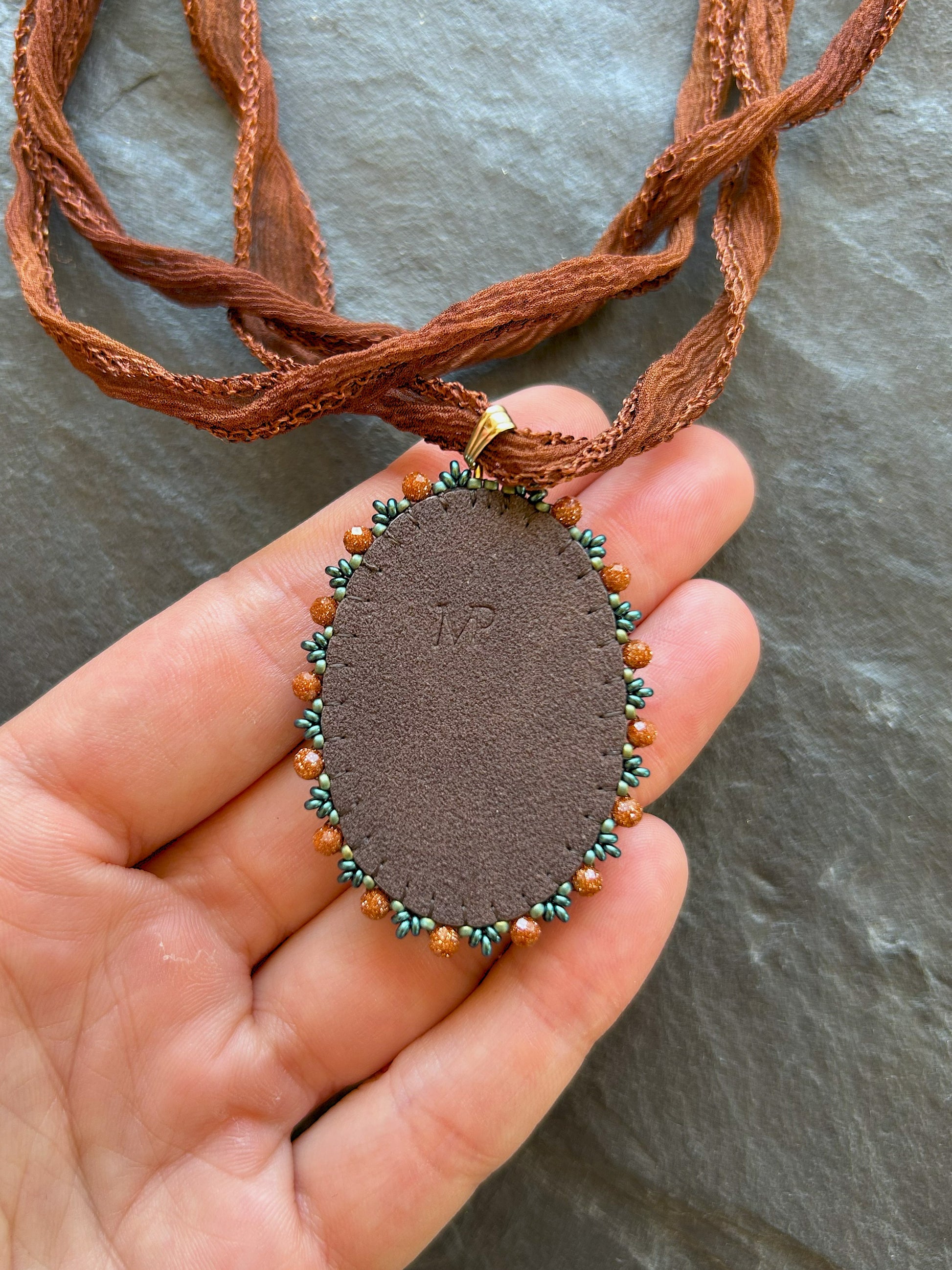 Hand embroidered unique jewelry piece