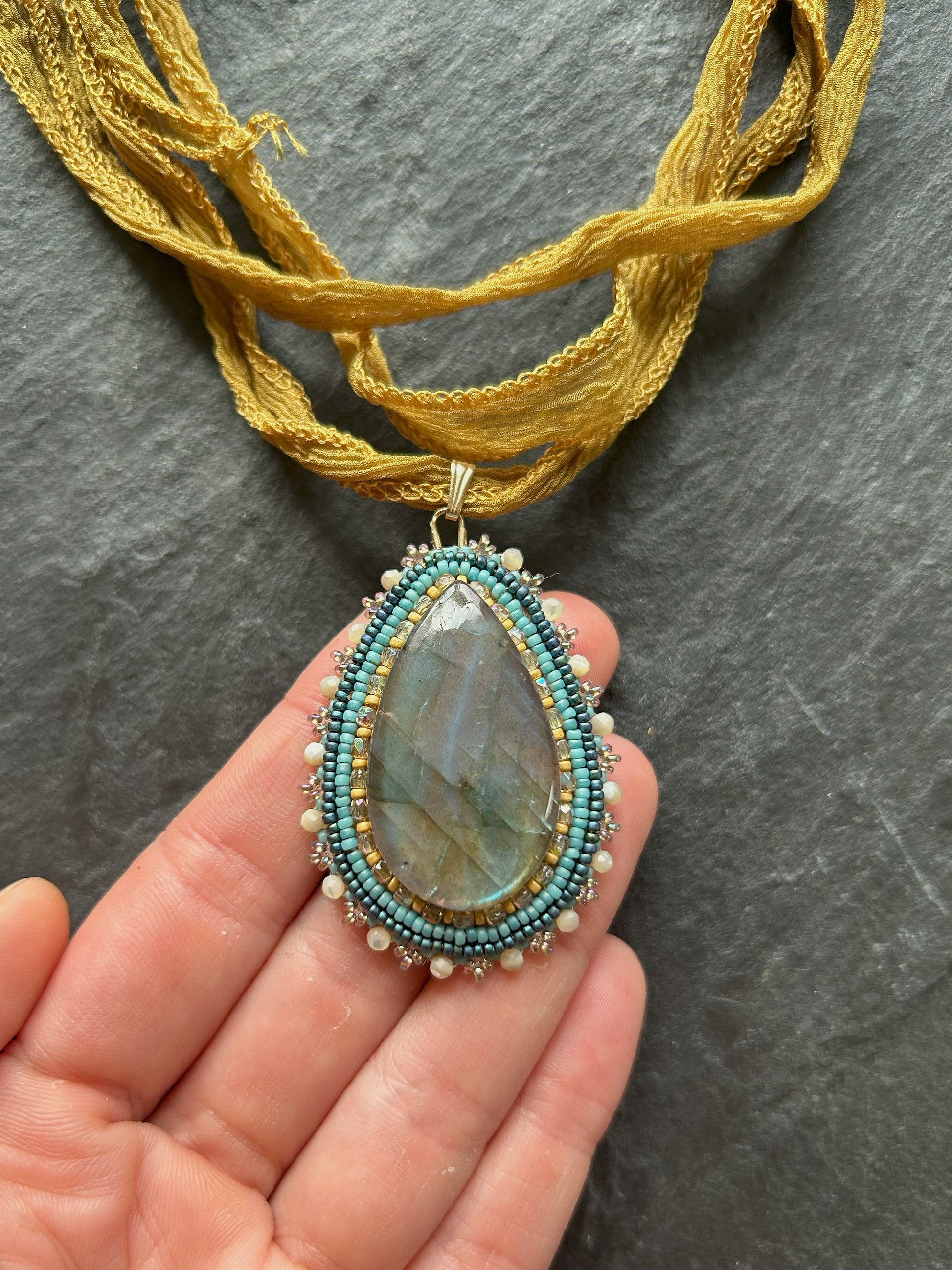 Hand embroidered unique jewelry piece