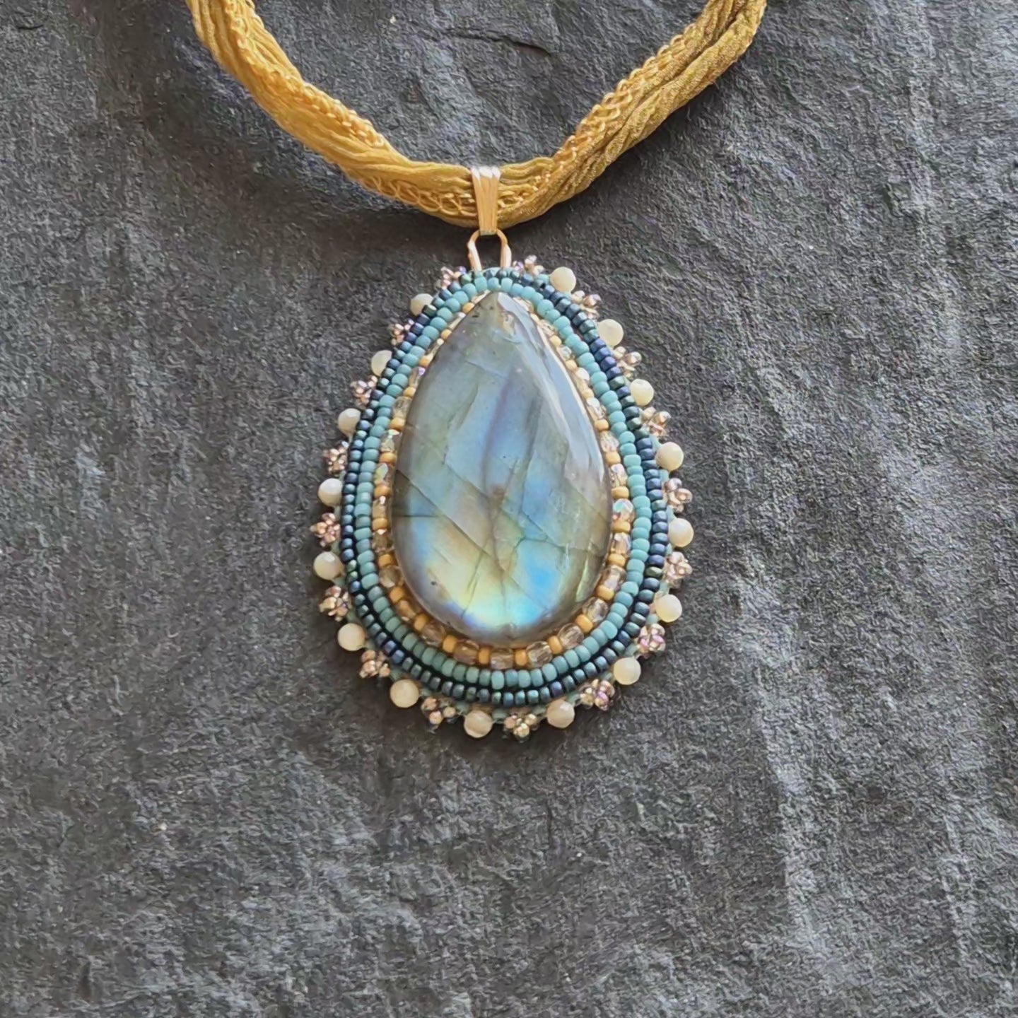 Labradorite necklace pendant with shell beads