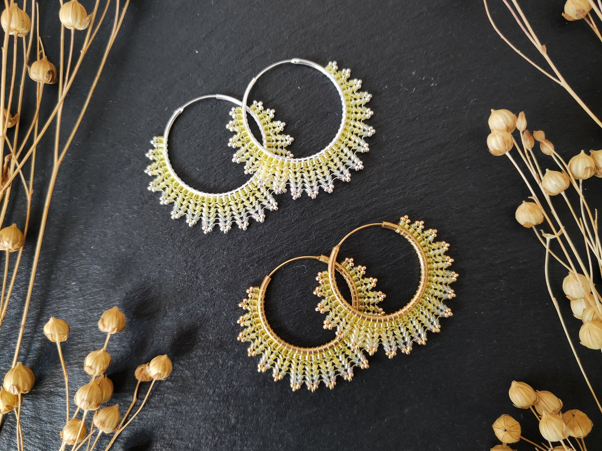 Ombre hoop earrings for your free time - high-quality endless hoops decorated with extra lightweight Delica glass beads woven in a herringbone look