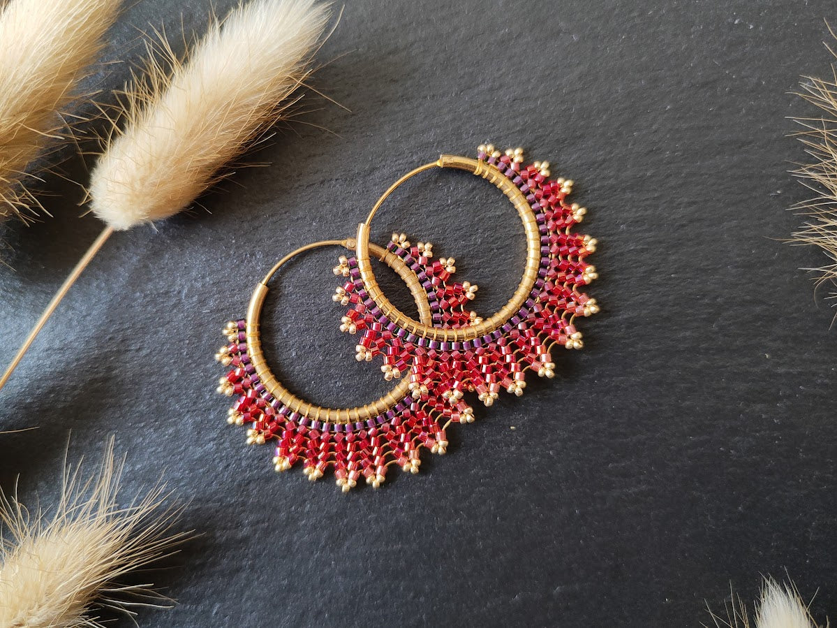 Brass hoop earrings "Neomi" - red