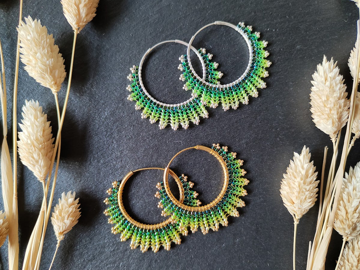 Ombre hoop earrings for your free time - high-quality endless hoops decorated with extra lightweight Delica glass beads woven in a herringbone look