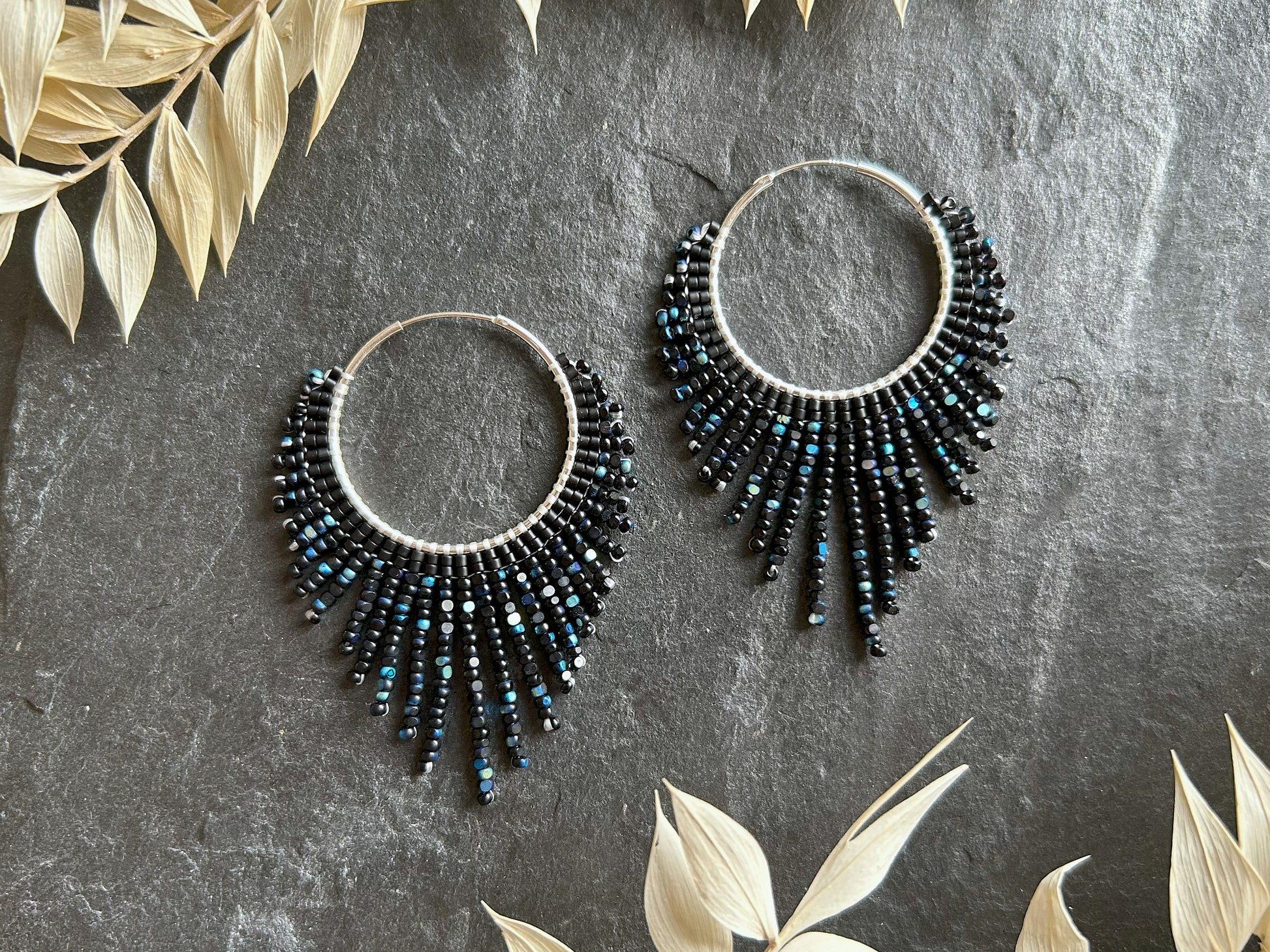 Sparkly hoop earrings for your free time or going out - high-quality endless hoops decorated with faceted glass beads